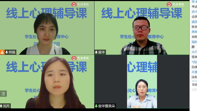 線上講解,專業輔導。9月2日,健康學院副教授梁豐、生物學院教師張俊華和學生處教師劉月共同為廣大學子開展了線上心理輔導課,為同學們講解了居家學習期間如何做好時間管理、情緒管理和新學期心理建設等心理知識,同學們積極發言,踴躍提問,三位老師針對同學們的問題和困擾給予了專業性回復,并結合實際情況給出相應的調適建議。聽課學生們紛紛表示會“積極應對”“相信美好”“對未來充滿期待”。