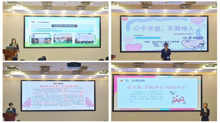 本次評選活動面向全校390個班級的心理委員開展,經學生個人申報、學院初評推薦,學生處資格復審,共有17名心理委員入圍校級評選。評選活動包括材料評審、風采展示和情景問答三個環節,選手們通過展示個人工作風采、分享在心理健康工作中的心路歷程和感悟,展現出過硬的業務素養。