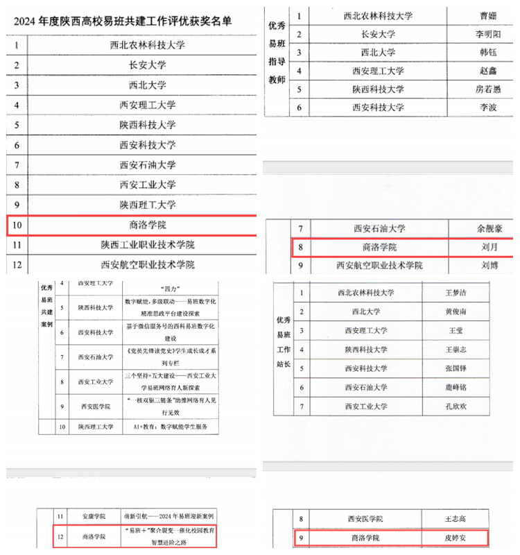近日,陜西省高校易班發展中心公布了2024年度陜西高校易班優秀評選結果,我校被評為2024年度“優秀易班共建高校”,學生處心理健康中心主任劉月被評為“優秀易班指導教師”,化材學院輔導員戴壹撰寫的易班共建案例《“易班+”聚合裂變-催化校園教育智慧進階之路》獲評年度優秀易班共建案例,易班學生工作站站長皮婷安同學獲評“優秀易班工作站站長”。本次評優工作面向全省高校開展,共評選出年度優秀易班共建高校15所、優秀易班指導教師10人、優秀易班輔導員10人、優秀易班共建案例15件、優秀易班工作站站長10人。
