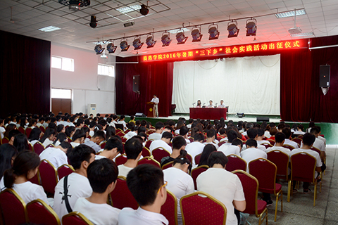 校團委書記蔣正治在發(fā)言中表示,我校2016年大學生暑期“三下鄉(xiāng)”社會實踐活動圍繞“青春建功十三五﹒攜手共筑中國夢”這一主題,組織大學生利用暑期時間走進鄉(xiāng)鎮(zhèn)、走進農村、走進企業(yè)、走向社會,在社會實踐中經風雨、見世面、受教育、長才干,在基層鍛煉中增強創(chuàng)業(yè)意識、提升創(chuàng)新能力,在服務社會中培養(yǎng)應用型人才。