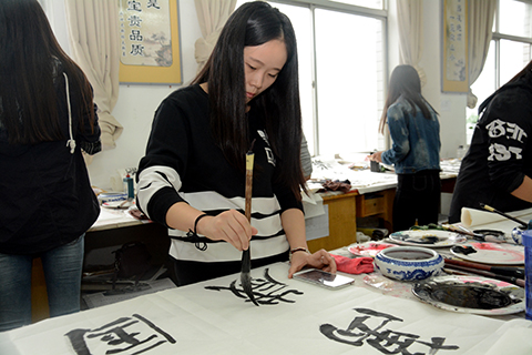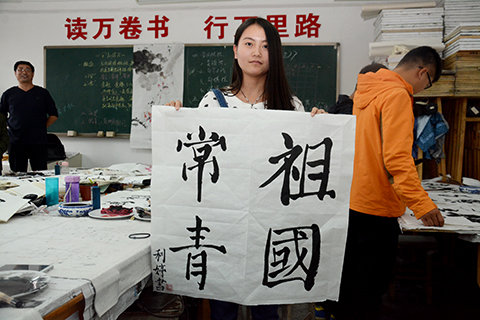 學(xué)生胡甜甜說道,書法是中國(guó)傳統(tǒng)文化的瑰寶,在祖國(guó)67華誕即將到來之際,用書法作品表達(dá)對(duì)祖國(guó)的愛,覺得很有意義,也深受教育。學(xué)生許佳妮說,作為當(dāng)代大學(xué)生,我們要認(rèn)真學(xué)習(xí),練就報(bào)效祖國(guó)的本領(lǐng),為實(shí)現(xiàn)中國(guó)夢(mèng)做出自己的貢獻(xiàn)!祝祖國(guó)繁榮昌盛,美麗富強(qiáng)!
