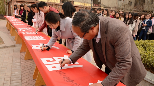 3月9日,文傳學院學子在莘子苑舉行“雷鋒月”活動啟動儀式,學子們在“志愿服務耀商洛,青春共筑中國夢”橫幅上簽下自己的名字,紛紛表示要傳承雷鋒精神、踐行社會主義核心價值觀。