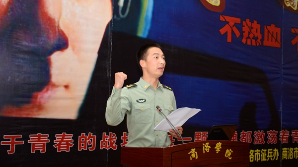 宣講會(huì)上,商洛籍優(yōu)秀現(xiàn)役軍人周淼、楊西嶺分別以《最是無(wú)悔軍營(yíng)路》《從青藏高原到天安門(mén)廣場(chǎng)的心路》為題,結(jié)合他們的軍旅生活、優(yōu)秀事跡作了宣講報(bào)告。報(bào)告精彩紛呈、宣講慷慨激昂,同學(xué)在聆聽(tīng)了他們的感人事跡后,為周淼從一個(gè)高考失利、懵懵懂懂的青年成長(zhǎng)為一名擁有二等功榮譽(yù)的解放軍戰(zhàn)士,為楊西嶺懷揣軍營(yíng)夢(mèng)走出商洛山、從校門(mén)到營(yíng)門(mén)、站崗青藏高原、參加威武的天安門(mén)廣場(chǎng)大閱兵而感到驕傲。