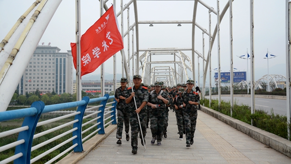 為確保此次拉練順利完成,學校做了周密的安排部署。保衛(wèi)處與地方交管部門協(xié)調(diào)配合,為行軍隊伍準備了指揮車、醫(yī)務車和保障車,在十字路口等處部署交警協(xié)助指揮交通;學生處、各二級學院黨總支負責人和新生輔導員全程跟隨行軍隊伍,重要路口警戒,重點關(guān)注掉隊人員,將女生放在排頭,輔導員走在隊伍右后方,確保拉練活動圓滿完成。歷經(jīng)三小時后,所有新生順利返回北新街校區(qū)。在行軍過程中,新生們斗志昂揚、隊列齊整、秩序井然,充分展示了軍訓成果和我校學子積極向上、不怕吃苦的精神風貌,引來了過往市民的注目和贊揚。