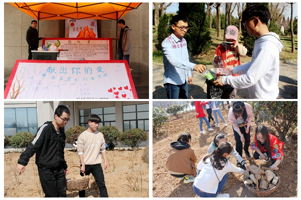 各二級學院的志愿者們也在活動期間開展了豐富多彩的志愿服務活動。化材學院堅持25年志愿服務,每年都開展關愛孤寡老人、關心留守兒童、科技服務鄉村等志愿活動,今年雷鋒月活動期間,組織師生帶著慰問品和校內師生捐贈的書籍、衣物前往楊斜敬老院,慰問那里的孤寡老人;人文學院的志愿者前往百順山老年公寓開展以“春風送暖,情滿人間”為主題的志愿服務活動,陪老人聊天,詢問他們的生活狀況,為他們送去關懷與溫暖;數計學院的志愿者開展“青春見行動,人人學雷鋒”志愿服務活動,在校園學雷鋒活動站和電腦義務維護維修點宣傳雷鋒同志的光輝事跡,并幫助師生維修手機、電腦等電子設備,呼吁我校師生從身邊小事做起,用實際行動傳承弘揚雷鋒精神;生物學院的志愿者們赴商州區板橋鎮敬老院開展“情暖夕陽,濃情元宵”學雷鋒志愿服務活動,志愿者為老人包餃子,陪同他們歡度佳節,以力所能及的實際行動弘揚中華民族尊老愛幼、助人為樂的傳統美德;建工學院的志愿者開展“愛在東關,益起捐”愛心募捐活動,將募集的兒童讀本、雜志、小說、體育器材等多種愛心物資親手分發給東關小學的孩子們,給他們帶去溫暖和希望。經管學院的志愿者前往金鳳山進行衛生清掃,他們仔細清掃石子路、灌木叢等處,讓金鳳山煥然一新,將雷鋒精神深植于心中,踐行于身邊;電信學院、馬克思主義學院的志愿者在綜合教學樓前新建的綠化區開展義務勞動,他們清理硬石雜物,美化校園環境的同時,落實“學習雷鋒,奉獻他人,提升自己”的志愿服務理念。