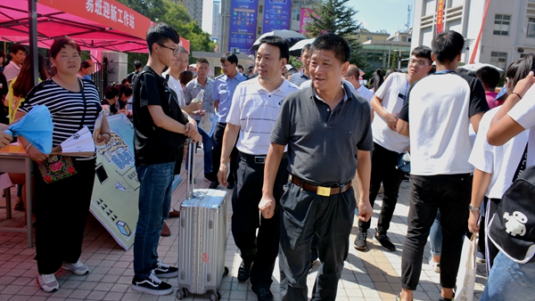 2018年我校面向28個省(市、自治區)錄取新生3593人。為了確保新生報到工作順利開展,9月4號下午,校長范新會、副校長魏書堂、黨委副書記彭虎軍、副校長劉勇帶領院長辦公室、宣傳部、校團委、教務處、學生處、財務處、后勤保障處、保衛處、信息中心等相關職能部門負責人,深入各個迎新接待場點,檢查指導迎新工作。