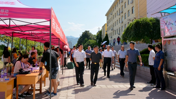 校領導先后到新生報到接待處、交費處、綠色通道、生源地助學貸款辦理處、臥具發放處、軍訓服裝發放處、銀行卡與通信卡辦理處等迎新接待場點,巡查新生接待工作開展情況。在各場點,校領導仔細了解報到情況,查看工作是否落實到位,要求相關職能部門和各學院要各盡其責、通力合作、注重細節,扎實做好新生報到工作,全力以赴為新生和家長提供優質服務,讓新生及家長走進校園就能迅速、便捷、舒心地辦理好入校手續,感受到商洛學院大家庭的溫暖。校領導還深入學生宿舍與遠道而來的新生及家長親切交談,關心他們的飲食住行,并向他們介紹了學校的相關情況。