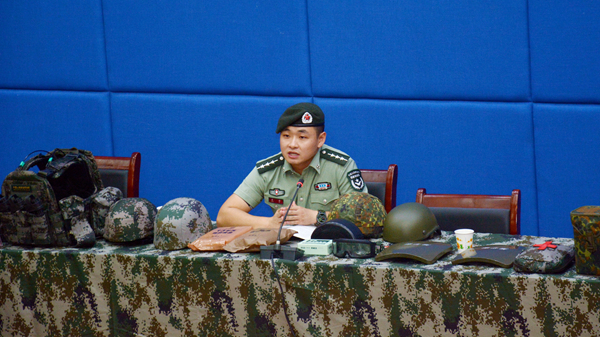 趙羽從“城市作戰”這一主題入手,分析了當前全球國防裝備建設情況,回顧了我國國防裝備的發展歷程,剖析了當前國際戰略局勢,對我軍未來現代化、數字化建設藍圖進行了展望,并結合實物展示對我軍單兵裝備情況進行了詳細講解。他深入淺出、幽默風趣的講授,贏得了現場陣陣掌聲。