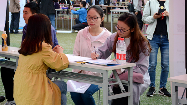 招聘會現(xiàn)場,學(xué)生與用人單位之間互動熱烈。期間,參會單位共舉行專場宣講會17場、面試11場,經(jīng)統(tǒng)計,463人次參加了宣講會,投遞簡歷2098人(次),簽約及有初步簽約意向的學(xué)生約285人。