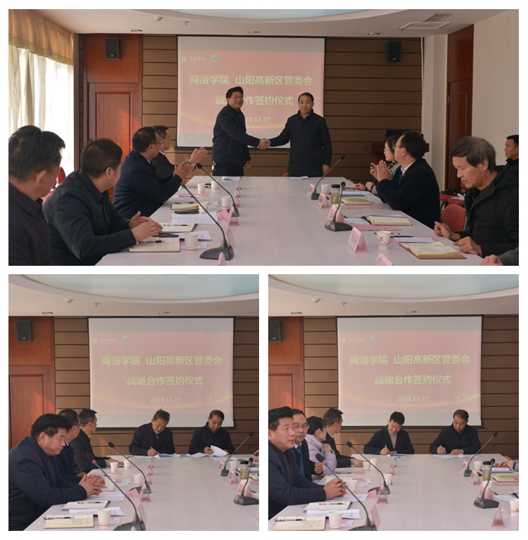 為深入推進校地、校企合作,服務地方經濟社會高質量發(fā)展,12月27日,我校與山陽高新技術產業(yè)開發(fā)區(qū)管理委員會舉辦戰(zhàn)略合作簽約儀式。校長范新會會見了山陽高新技術產業(yè)開發(fā)區(qū)管委會黨工委書記李楊俊一行,并圍繞人才培養(yǎng)和校企合作座談交流。副校長王新軍出席簽約儀式。