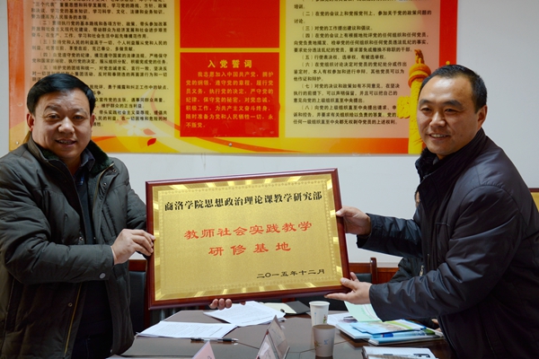 為了認真貫徹落實《商洛學院關于印發(fā)<商洛學院根植地方行動計劃實施辦法(試行)>》文件精神,切實實現(xiàn)教師進政府、進社區(qū)、進鄉(xiāng)村,不斷提高我校思政課教師深入基層、服務地方的能力,2016年1月6日,思想政治理論課教學研究部組織部分教師前往洛南縣陜南移民安置工作辦公室、洛南縣四皓中學,舉行教師實踐研修基地掛牌儀式,積極開展校地合作。