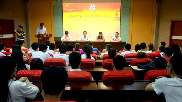 7月7日下午,我校2017年大學生暑期社會實踐暨脫貧攻堅專項活動出征儀式在圖書館一樓報告廳舉行,校黨委副書記彭虎軍出席出征儀式并向各實踐團隊授旗。校團委副書記許薇、團委委員、各二級學院團總支書記、實踐團隊指導教師及全體隊員參加了出征儀式。儀式由校團委副書記徐劍主持。