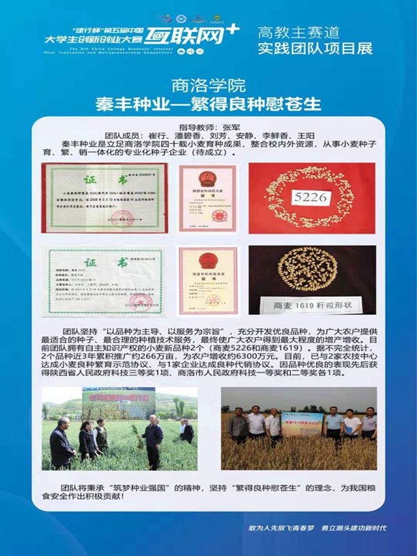 晚上大約十點(diǎn),我們團(tuán)隊師生接到教務(wù)處蘇鐵柱老師電話:我們的項目——秦豐種業(yè):繁得良種慰蒼生——入圍金獎了!我們幾人頓時興奮地像個孩子一樣跳躍起來。我深深地松了口氣,一年多的努力總算有了結(jié)果。