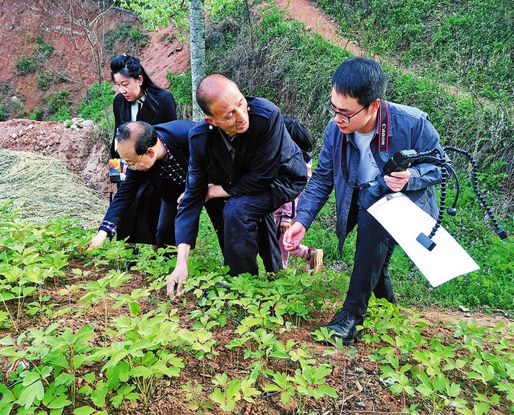 今年4月7日,王洋在商州區蘆溝村中藥材種植區,調研中藥材病蟲害發生情況