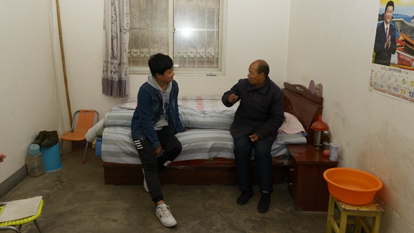 楊斜敬老院坐落在楊斜鎮(zhèn)的一個村莊里,青年志愿服務(wù)隊冒雨來到敬老院。一進院子,這些常年生活在這里的孤寡老人們像見到親人般喜出望外,因為經(jīng)常來往,大家很快就和老人們互動起來。同學(xué)們在院子里唱歌、跳舞、說相聲,為老人表演節(jié)目,給這個寧靜的院子帶來了歡聲笑語,吸引了周邊村民前來觀看。管發(fā)亮老人激動地告訴我們,自己今年64歲了,無兒無女,曾經(jīng)在街頭靠乞討生活,在政府的救助下,1992年來到敬老院,過上了有衣穿有飯吃的幸福生活。說到高興處,管發(fā)亮吼起了秦腔,一連唱起《社會主義好》《回娘家》等歌曲。