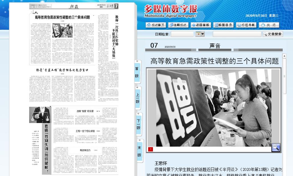 王思懷教授在《教師報》刊文直面《高等教育急需政策性調整的三個具體問題》