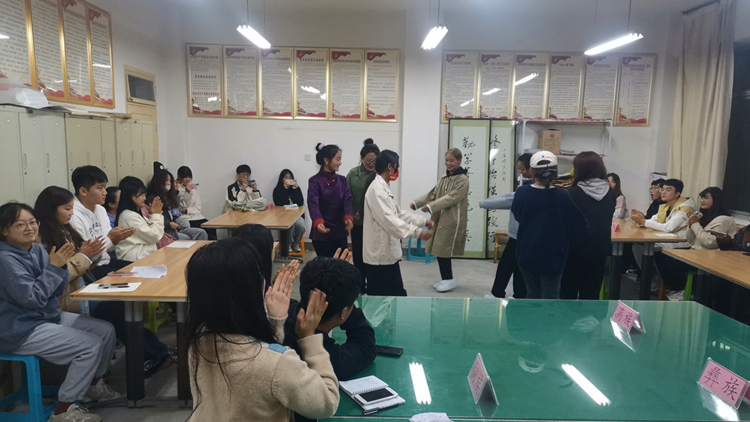 在互動交流環節,學院回、藏、侗、土家、蒙古、苗、東鄉、滿的9個少數民族學生,分別介紹了各自民族文化習俗、生活習慣等,并表演了精彩的少數民族舞蹈。