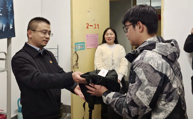 廉明一行與學生們親切交談,詳細了解他們學習和生活中的現實困難,為他們送去了包、羽絨服、筆、紅色書籍等慰問品,叮囑他們遇到任何困難及時尋求學校和團委的幫助,鼓勵他們在完成自身專業學習的同時,積極參加校園文化活動,不斷提高自身素質,努力做一名合格的社會主義建設者和接班人。