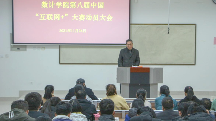 11月24日下午,數計學院舉辦第八屆中國國際“互聯網+”大學生創新創業大賽動員大會,學院院長李超、副院長王念良、教務處副處長高擴昌,學院全體無課教師和學生代表100余人參加了會議。