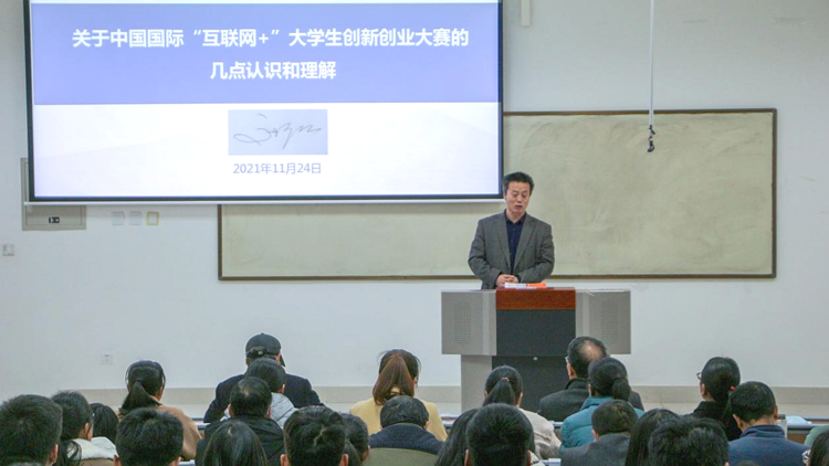 高擴昌作了題為《關于中國國際“互聯網+”大學生創新創業大賽的幾點認識和理解》的專題報告,對“互聯網+”大賽政策、學科前沿及如何備賽進行了詳細的解讀,介紹了我校歷年參賽情況,分享了自己在組織參與“互聯網+”大賽過程中的心得體會與寶貴經驗。