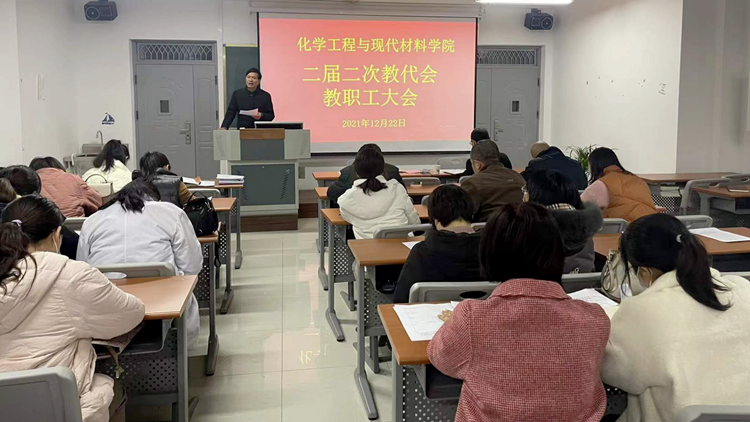 教代會在雄壯的國歌聲中開幕。周春生在會上對《化學工程與現代材料學院“十四五”事業發展規劃》《化學工程與現代材料學院2021年工作總結和2022年工作計劃》《化學工程與現代材料學院崗位績效工資分配辦法》向與會人員作了說明。