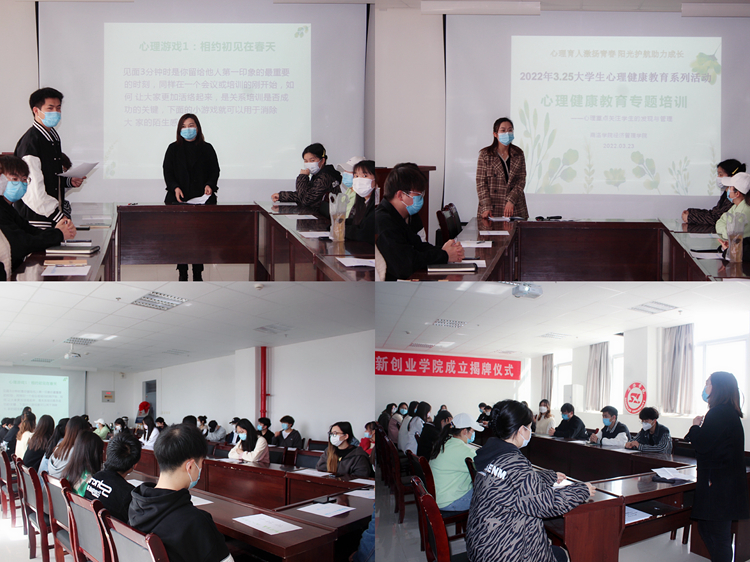 啟動儀后,國家三級心理咨詢師,輔導員任倩面向全院心理委員開展了“心理育人激揚青春 陽光護航助力成長”主題培訓。培訓現場,任倩通過專題講解、心理游戲、現場互動等形式和學生進行交流溝通,了解同學們心理狀況。同學們紛紛表示以后將會多關注心理健康方面知識,保持積極健康心態。
