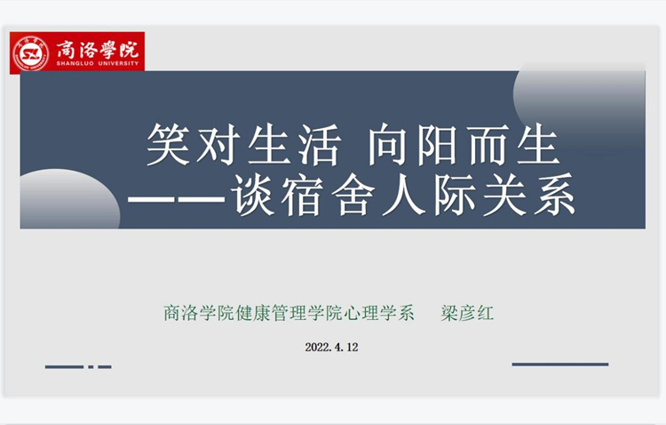 為幫助我院學生做好心理調適和學習生涯規劃,更好地處理好宿舍人際關系。4月12日,健康管理學院心理學系教師、國家二級心理咨詢師梁彥紅副教授通過在線平臺以“笑對生活 向陽而生—談宿舍人際關系”為主題作了線上公益講座。