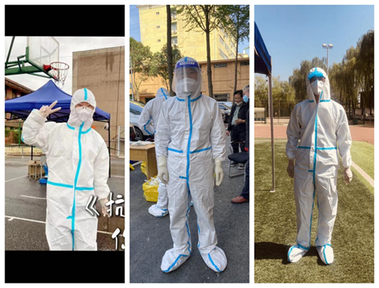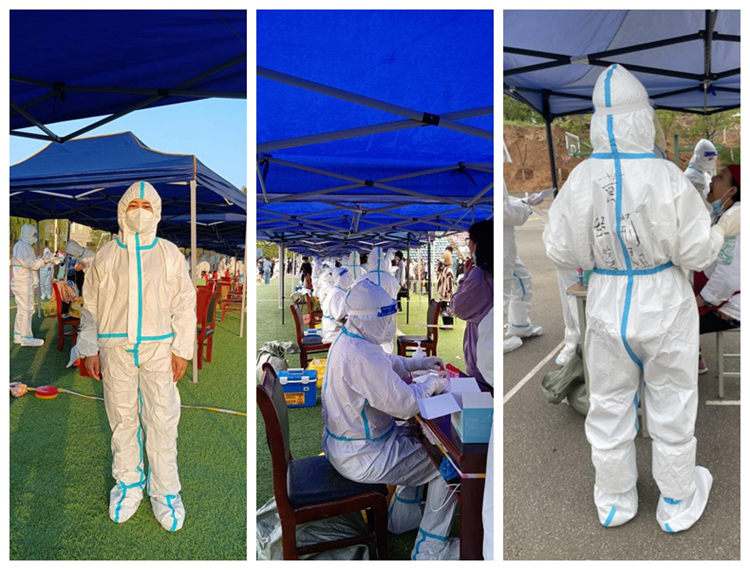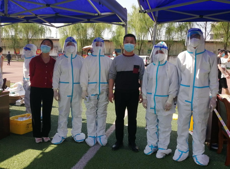 做好志愿服務(wù),發(fā)揮先鋒作用。在學(xué)校大操場,鄧淑紅、楊鵬飛、李娜娜等教師身穿防護(hù)服,克服酷暑,連續(xù)參與全校學(xué)生核酸檢測任務(wù);在學(xué)校小操場,黃荊晶、周方舟、丁燕琳等教師引導(dǎo)廣大教職工有序排隊(duì)、信息錄入、掃碼測溫;南院家屬區(qū),郭磊磊老師指導(dǎo)幫助退休教職工和年長家屬掃碼、填報(bào)相關(guān)個(gè)人信息;青年教師公寓檢測區(qū)采樣點(diǎn),王程老師協(xié)助采樣工作人員開展測溫、清理工作臺、現(xiàn)場消殺。
