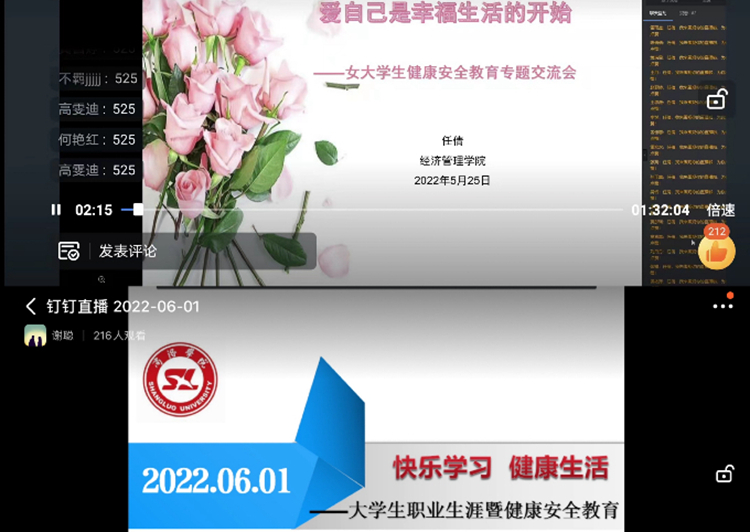 ——開展健康安全專題分享會。為進一步增強大學生心理健康教育和安全教育的實效性,切實貫徹“立德樹人”基本要求,經管學院輔導員謝聰、任倩通過線上平臺組織開展健康安全線上交流會。交流會從疫情防控、身心健康、人身安全等方面展開分享,引導大學生提升健康生活心態,養成文明、健康、科學生活方式,增加安全、生理、心理知識,增強安全意識和自我保護能力,做好自身健康安全第一責任人。