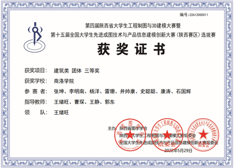在不久前結束的第四屆陜西省大學生工程制圖與3D建模大賽暨第十五屆全國大學生先進成圖技術與產品信息建模創新大賽(陜西賽區)上,我校城鄉規劃與建筑工程學院派出15名參賽選手組成的團隊,與省內57支隊伍的730余名選手進行了激烈角逐,取得單項一等獎1項、二等獎2項、三等獎7項,并榮獲建筑團體三等獎。這是建工學院師生參加該項比賽以來獲得的最好成績。
