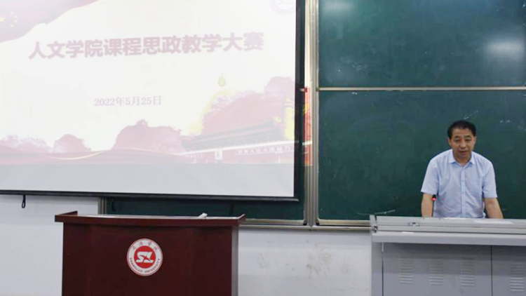 為深入貫徹落實教育部《高等學(xué)校課程思政建設(shè)指導(dǎo)綱要》文件精神,把思想政治教育貫穿人才培養(yǎng)全過程,根據(jù)教務(wù)處《關(guān)于舉辦商洛學(xué)院2022年課程思政講課比賽的通知》要求,在前期各系初賽的基礎(chǔ)上,人文學(xué)院于2022年5月25日1號教學(xué)樓多媒體4 教室舉行了課程思政教學(xué)大賽院級決賽。特邀我校副校長王新軍、客座教授韓魯華、工會副主席魚小強、督導(dǎo)與評估中心主任張曉倩、人文學(xué)院院長張文諾、馬克思主義學(xué)院劉敦俊、經(jīng)濟管理學(xué)院房琳擔(dān)任評委,學(xué)院全體教師及部分學(xué)生代表觀摩比賽。人文學(xué)院副院長任桂婷主持比賽。