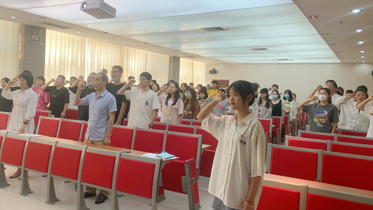同上一堂專題黨課。各學(xué)生黨支部書(shū)記以“同心慶七一·喜迎二十大·奮進(jìn)新征程”為主題給畢業(yè)生黨員上最后一堂黨課,啟示畢業(yè)生黨員要在未來(lái)人生的奮斗征程上,加強(qiáng)黨性修養(yǎng),自覺(jué)堅(jiān)持學(xué)黨史,把黨史作為必修課、常修課,保持頭腦清醒,涵養(yǎng)清風(fēng)正氣,起表率作用。