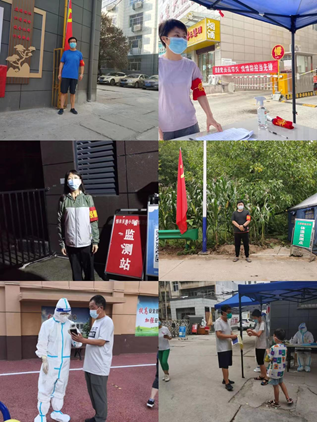 我院彭永鑫老師、楊全老師住在南院家屬區,主動承擔南院的核酸檢測志愿服務工作,楊全老師還動員自己大學暑假在家的兒子一起參加核酸檢測志愿服務。劉曉民、李永華、張潔老師分別在自己的小區承擔起巡邏、信息登記、核酸檢測、值班值守等工作。輔導員韓威,身在老家洛南,也積極投身村里的疫情防控工作,協助所在村委會工作人員進行入戶核酸采樣,并主動承擔卡點值班任務。