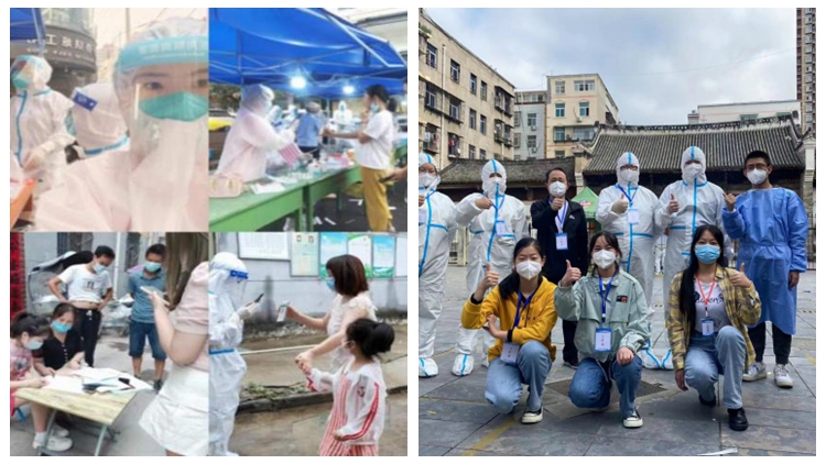 面對暑期各地疫情突發狀況,人文學院學子第一時間響應當地政府號召,變身“白墩墩”“紅融融”,協助醫護人員設置檢測場地、維持采樣秩序、進行掃碼登記、發放核酸貼紙,確保核酸檢測工作有序進行,為當地疫情防控工作貢獻青春力量,展現青年責任擔當。