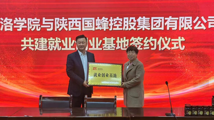 簽約儀式上,健康管理學院黨委書記魯綿茸和陳云分別代表健康管理學院和陜西國蜂控股集團有限公司簽訂了大學生就業創業基地建設協議。魯綿茸為陜西國蜂控股集團有限公司授牌。
