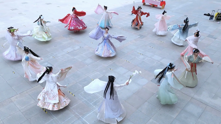 清商漢服學社在玉蘭廣場舉辦的“十二花神齊探春,共赴一場花朝宴”活動以“入畫江南”走秀拉開帷幕,并相繼進行敬花神、尋找12花神NPC集章贏獎、畫花鈿、簪花賜福和解讀十二花神等活動環節。社團成員身著不同形制的漢服,細心溫柔地指導每一位前來免費體驗畫花鈿、珍珠面妝、團扇等項目的同學。活動現場其樂融融,參與的同學借此活動充分感受民間傳統文化的樂趣,欣賞傳統服飾之美。