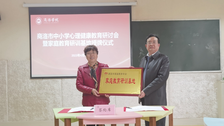 為貫徹落實(shí)黨的二十大精神,深入實(shí)施健康中國(guó)戰(zhàn)略,深化校地合作力度,加快推進(jìn)健康商洛建設(shè),4月4日下午,健康管理學(xué)院組織舉辦商洛市中小學(xué)心理健康教育研討會(huì)暨家庭教育研訓(xùn)基地授牌儀式。商洛市家庭教育學(xué)會(huì)會(huì)長(zhǎng)朱才寶,學(xué)會(huì)副會(huì)長(zhǎng)王康敏、明秀蘭,學(xué)會(huì)副秘書長(zhǎng)徐聲智、孫景山出席會(huì)議。商洛中學(xué)、商洛市初級(jí)中學(xué)、商州秦韻小學(xué)等中小學(xué)校領(lǐng)導(dǎo)、專家,健康管理學(xué)院全體黨政領(lǐng)導(dǎo)、學(xué)生工作相關(guān)人員及心理學(xué)系全體教師參加本次活動(dòng)。