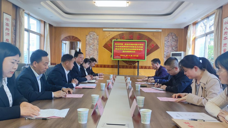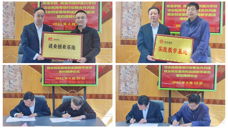 廉明與張淑峰代表雙方簽署大學生就業創業基地建設合作協議,王念良與商州富興學校副校長劉鐵成代表雙方簽署商洛學院校外實踐教學基地合作協議。廉明、王念良分別為就業創業基地、實踐教學基地授牌。