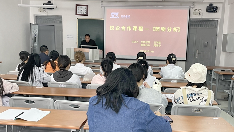 5月13日下午,由生物學(xué)院和陜西盤龍藥業(yè)集團(tuán)股份有限公司共同開發(fā)的校企合作課程建設(shè)活動(dòng)在丹江校區(qū)5號(hào)教學(xué)樓開展。此項(xiàng)校企合作課程《藥物分析》是制藥工程專業(yè)必修課,校內(nèi)主講教師為生物學(xué)院王學(xué)軍教授,校外主講人為盤龍藥業(yè)藥研院的資深專家周緒華。學(xué)院制藥工程專業(yè)師生代表參加活動(dòng)。