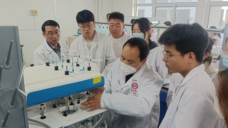 隨后,王學(xué)軍教授和周緒華老師帶領(lǐng)學(xué)生進(jìn)入實(shí)驗(yàn)室,開展甲硝唑片溶出度的測(cè)定實(shí)踐。在實(shí)操的每一個(gè)環(huán)節(jié),兩位教師悉心指導(dǎo),學(xué)生自主實(shí)驗(yàn)的同時(shí)與教師積極互動(dòng),詳細(xì)討論儀器操作的注意事項(xiàng)、出現(xiàn)的問題和解決的辦法,以及觀察的指標(biāo)、數(shù)據(jù)的收集與計(jì)算、結(jié)果的判定等實(shí)驗(yàn)課程內(nèi)容。