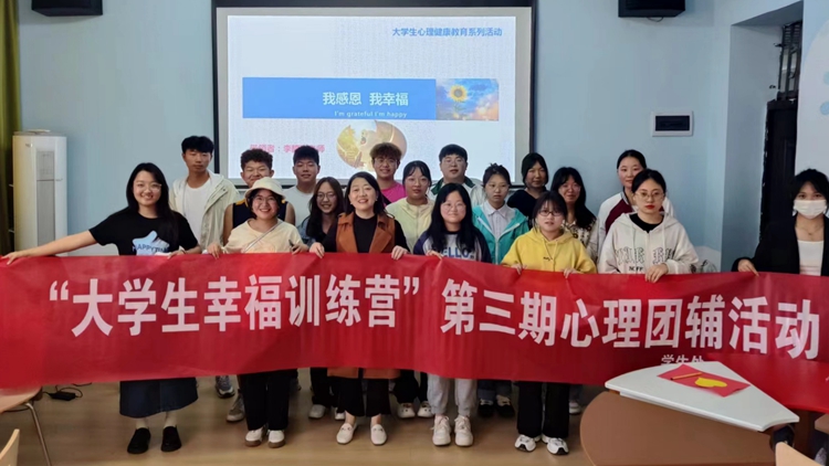 5月24日至6月9日,學生處聯合“向陽花”大學生危機預控工作室以“育心賦能,提升幸福力”為主題,推出“大學生幸福訓練營”第三期團體心理輔導系列活動。此次活動共分7次進行,學生處心理健康教育中心相關工作人員,各二級學院學工人員及學生代表約900余人次參與活動。