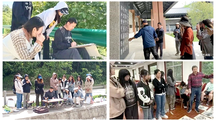 本次展出的34位同學百余幅山水畫寫生作品是在指導教師袁志正、張長林的帶領下,美術系學生為期兩周的學習成果展示。師生深入洛南石門,感受鄉村的淳樸民風和田園風光;拜謁倉頡造字授書處,浸潤倉頡造字的智慧和創新精神;參觀漢字源流館,傳承中華民族優秀傳統文化;對景寫生洛惠渠,堅定人定勝天的頑強意志;體驗親農溪樂谷,描繪新時代的美好生活……作品展現了學生獨特的藝術視角,表達出對自然山水的熱愛和對美好生活的向往。