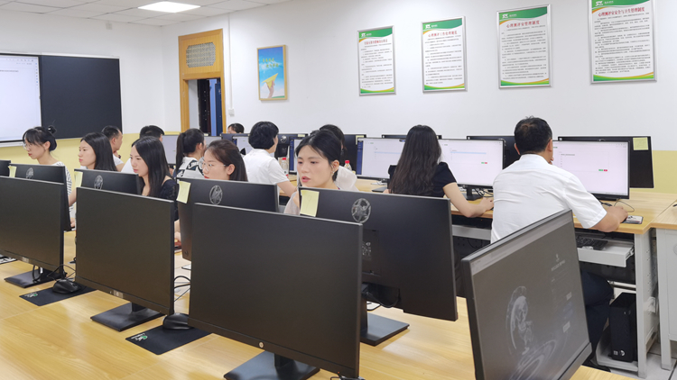 姚馨一行實地考察了我校省級心理健康教育中心,參觀了解了健康學院市級智慧心理研究與服務中心建設情況。在專業老師的指導下,體驗了認知神經心理實驗室、師范技能實訓室相關心理訓練器材設備,部分陪同人員還完成了首次“心理體檢”。