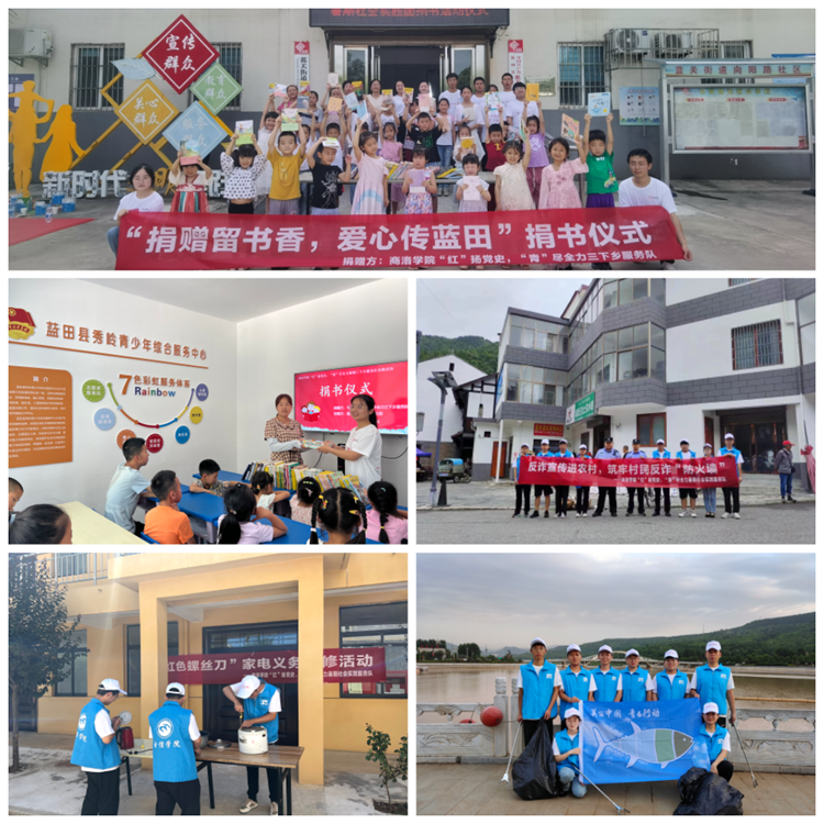 真心為民辦實事振興路上顯擔(dān)當(dāng)。實踐隊積極對接藍(lán)田縣團(tuán)委,開展系列宣講及主題實踐活動。一是在藍(lán)關(guān)街道向陽路社區(qū)、三官廟鎮(zhèn)移民社區(qū)開展捐書贈書活動,現(xiàn)場捐書一百余本;二是開展“讀紅色故事,學(xué)紅色精神”主題教育宣講活動;三是與當(dāng)?shù)厍嗌倌暌黄穑_展環(huán)保人人有責(zé),共護(hù)灞河水活動。系列活動的開展,充分彰顯了電信青年學(xué)子助力鄉(xiāng)村振興的責(zé)任與擔(dān)當(dāng)。