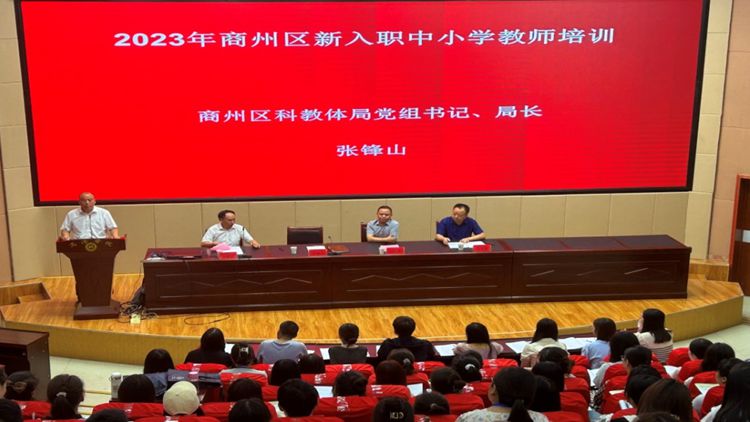 8月23日,2023年商州區新入職中小學教師培訓在我校圖書館二樓報告廳舉行開班典禮。商州區科教體局黨組書記、局長張鋒山,繼續教育學院院長付軍昌出席典禮。典禮由繼續教育學院副院長任新山主持。