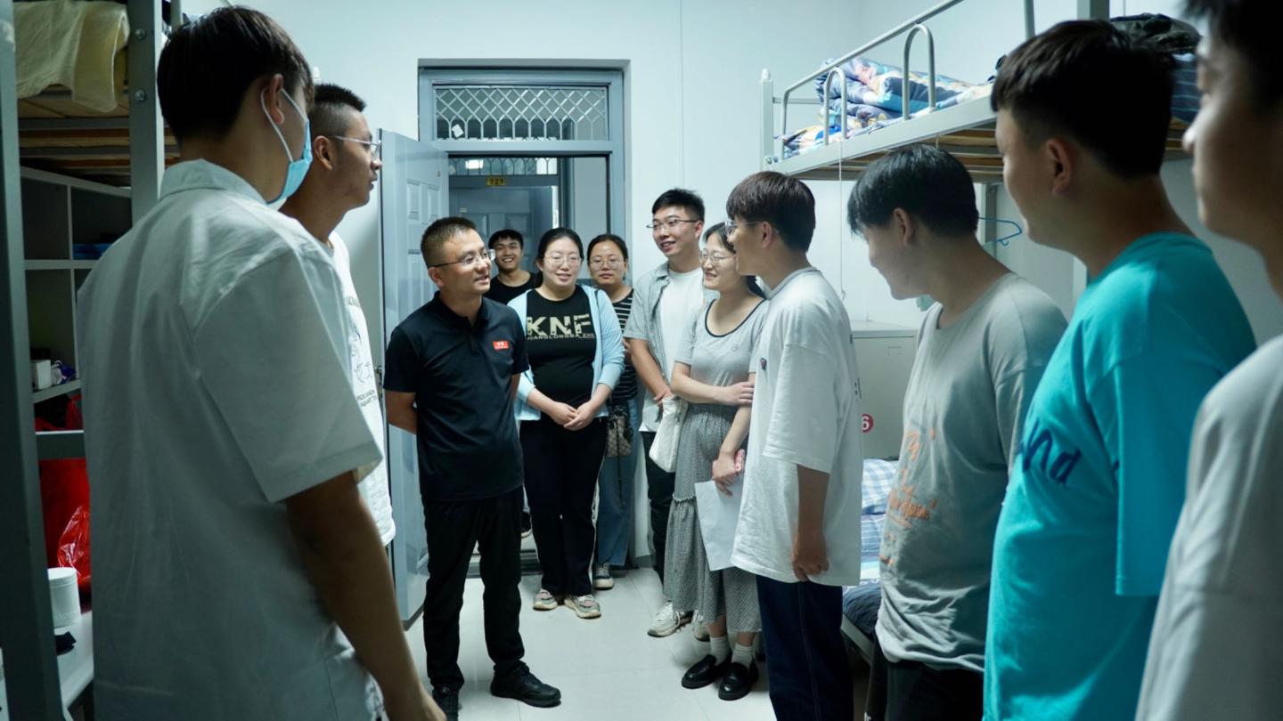 宿舍走訪,貼心溫暖。31日晚上,學院黨政領導及全體新生班輔導員、班主任分組走訪新生宿舍。老師們對新生的到來表示熱烈歡迎,關切詢問大家對新環境的適應情況,耐心解答同學們存在的疑惑與問題,并暖心提醒同學們注意早晚的溫差,以及軍訓期間的安全問題。