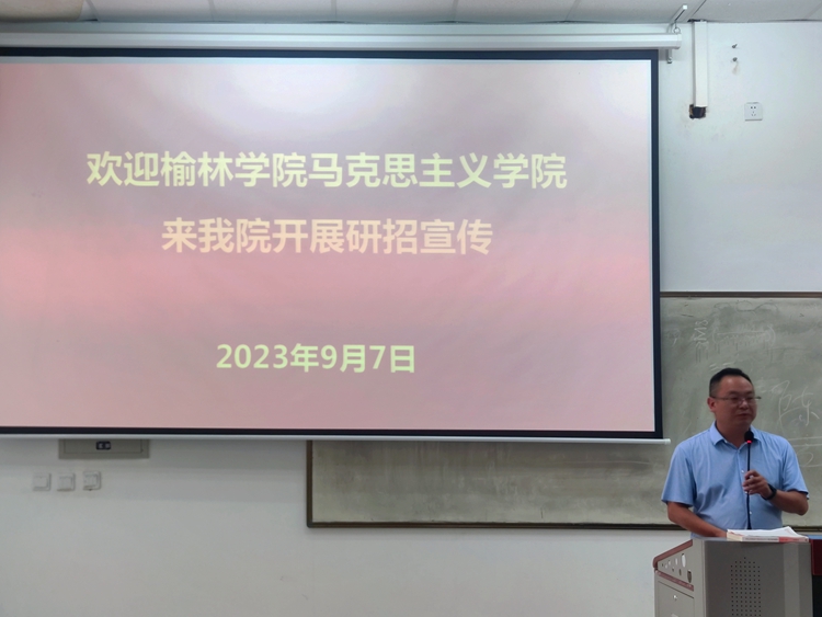 為有效應對碩士研究生考試競爭日趨激烈的形勢,拓寬升學渠道,提高人才培養質量,9月7日下午,榆林學院馬克思主義學院副院長劉小紅、博士薛俊武、副教授胡少波應邀赴我校馬克思主義學院開展碩士研究生招生宣講會。馬克思主義學院院長蔣正治,黨總支書記劉麥霞,副院長武永耿出席會議。學院相關教師,2020級、2021級全體學生參加會議。會議由蔣正治主持。