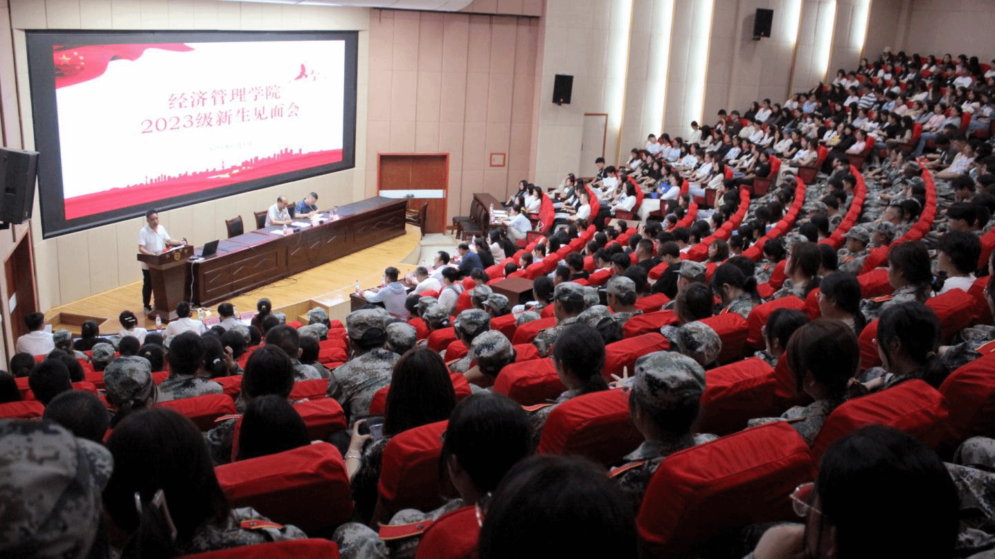 為使2023級全體新生對經(jīng)濟(jì)管理學(xué)院有更全面的了解,幫助新生更快地融入校園生活,在新生軍訓(xùn)結(jié)束之際,經(jīng)濟(jì)管理學(xué)院在圖書館二樓報(bào)告廳舉行2023級新生見面會(huì)。學(xué)院黨政領(lǐng)導(dǎo)班子、科級以上干部、各系(部)主任,全體輔導(dǎo)員以及2023級430余名新生參會(huì)。見面會(huì)由學(xué)院黨委書記高擴(kuò)昌主持。