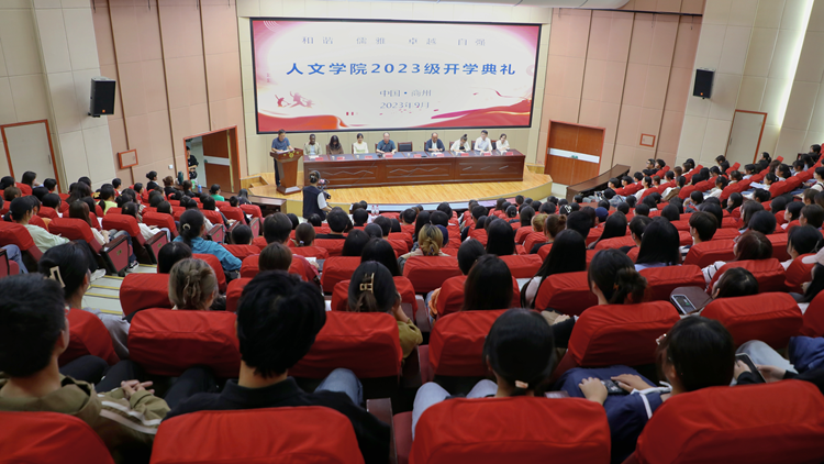 9月21日晚,人文學院舉行2023級新生開學典禮。人文學院黨委書記杜明生,院長張文諾,各系主任,教師代表,全體輔導員以及408名新生參加開學典禮。典禮由副院長馬英群主持。