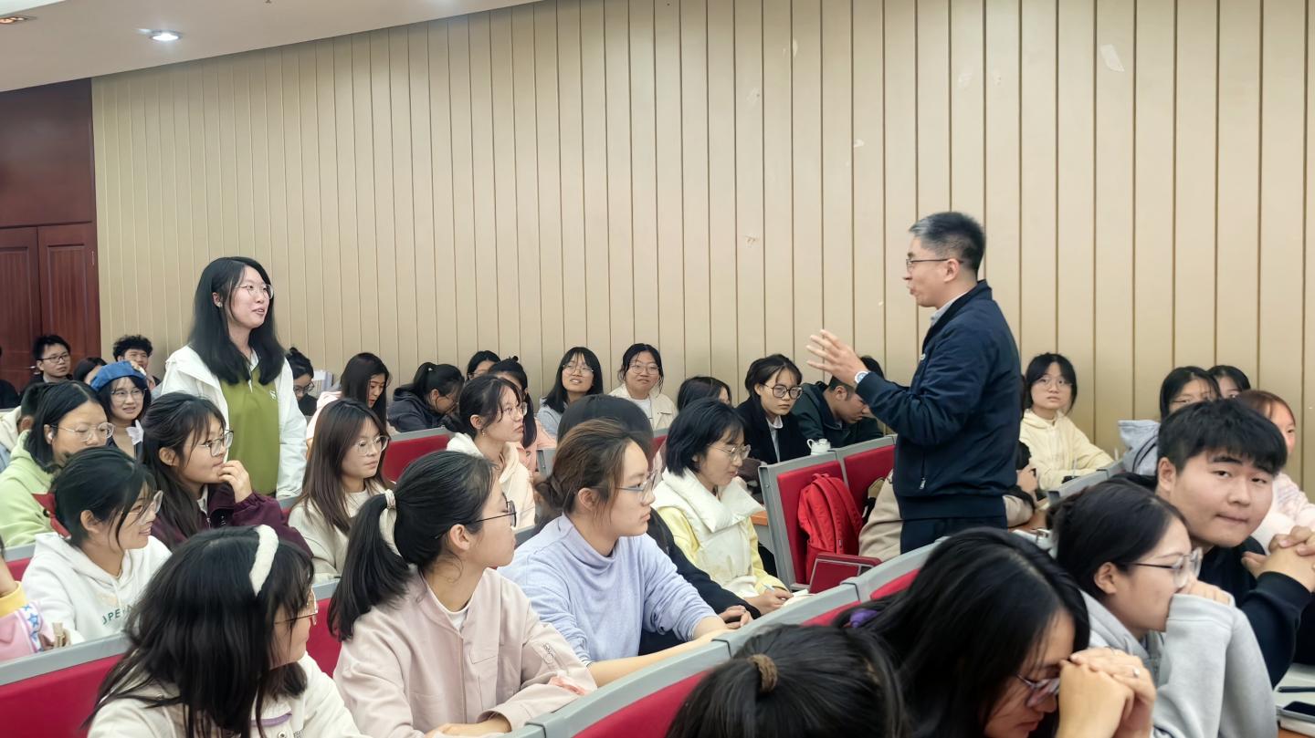 徐斌結合自己多年英語教學與研究經驗,通過對英語四級考試現狀的綜合剖析,深入講解了考試重要性、備考策略、復習方法、考試技巧及寫作專項突破等方面以及如何利用學校購買的3E英語多媒體數據庫進行有效備考。通過中英雙語講授、鮮活生動的案例、句句點睛的解讀,為我校學生講授了一堂干貨滿滿的CET-4備考指南課。講座受到在場學生的一致好評,現場氛圍熱烈高漲。